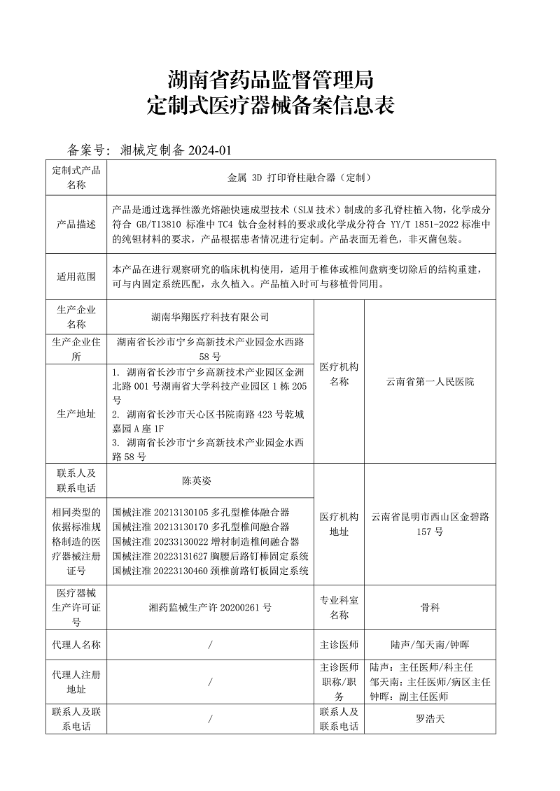 定制式J9九游会娱乐备案信息表(湘械定制备2024-01)