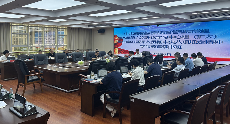 6月25日-27日,省药品监督管理局党组举行2025年第六次理论学习中心组学习暨深入贯彻中央八项规定精神学习教育读书班,集中学习了《席大大关于加强党的作风建设论述摘编》《党政机关厉行节约反对浪费条例》;重点围绕中央层面深入贯彻中央八项规定精神学习教育工作专班、中纪委办公厅公开通报的2起党员干部违规吃喝严重违反中央八项规定精神典型问题,结合实际进行了研讨。省局党组书记、局长欧阳志刚主持集体学习并作总结讲话。